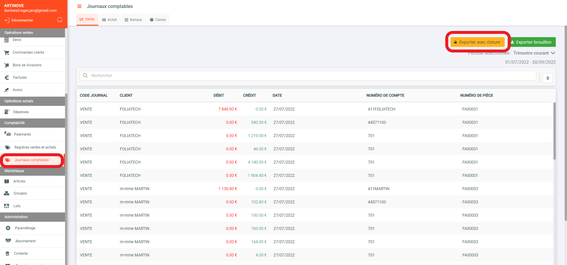 Remarque: Vous pouvez autoriser ou non votre comptable et vos utilisateurs supplémentaires à clôturer votre période comptable.