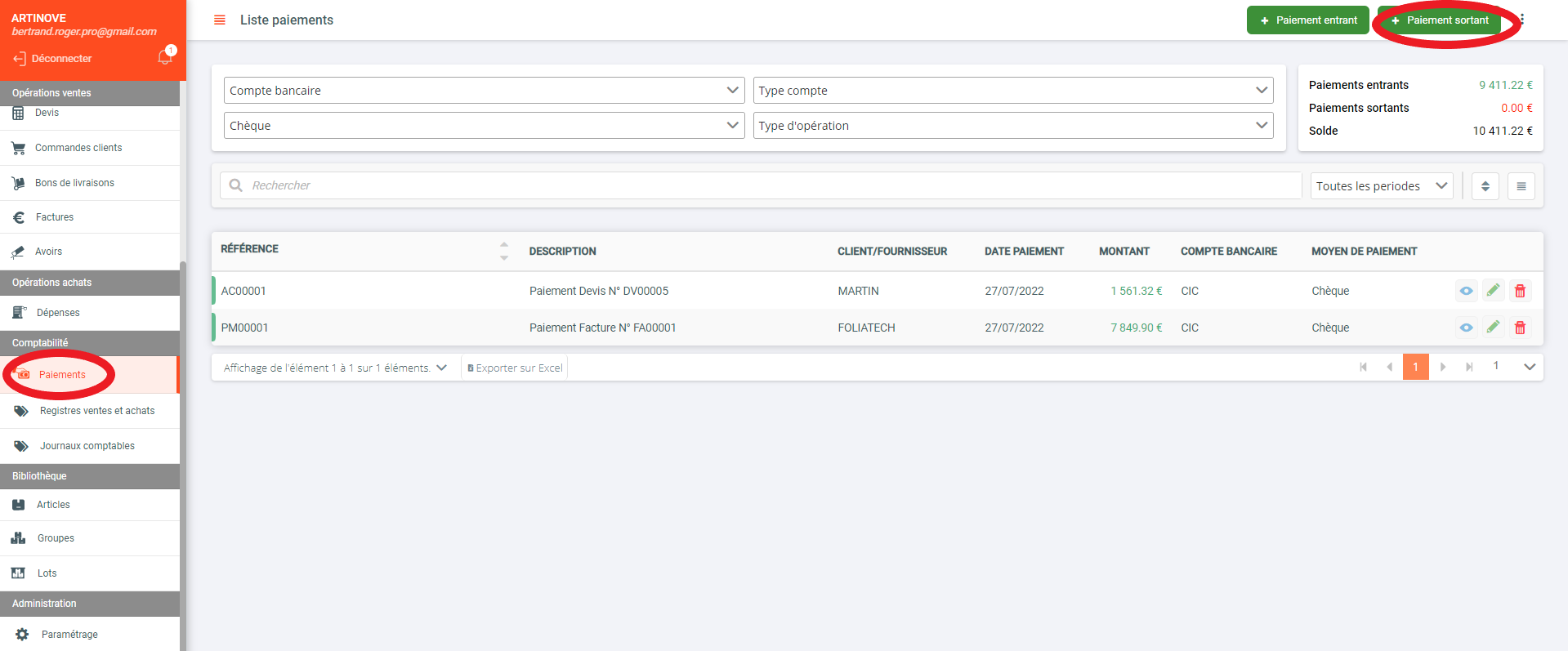 2- Depuis la rubrique "Paiements" de la barre latérale: ( Image 2)
